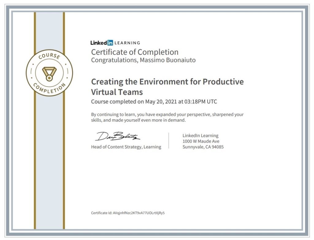 Certificate “Creating the Environment for Productive Virtual Teams”