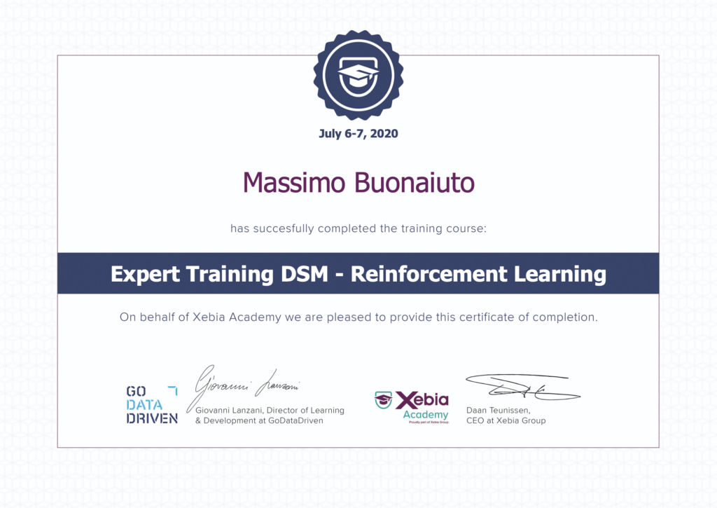 Xebia 2020 Certificate Reinforcement Learning