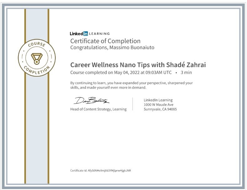 Certificate “Career Wellness Nano Tips with Shadé Zahrai”