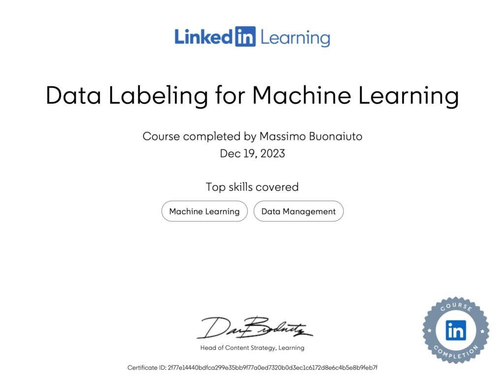 You can find below the list of my 34 Technical Certificates, including a Master’s degree in Computer Science and several specializations in Artificial Intelligence and Machine Learning.